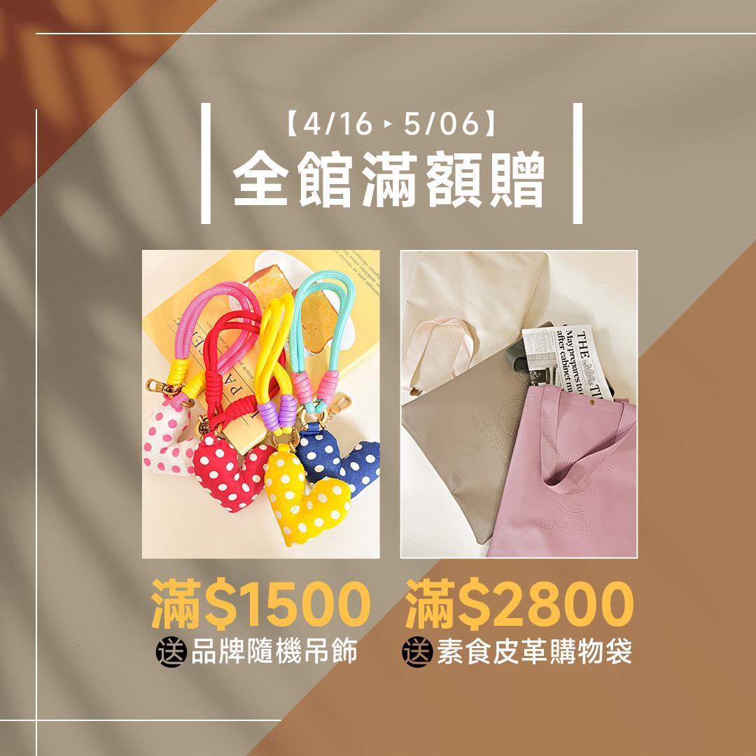 滿1500送品牌隨機吊飾 。滿2800送素食皮革購物袋